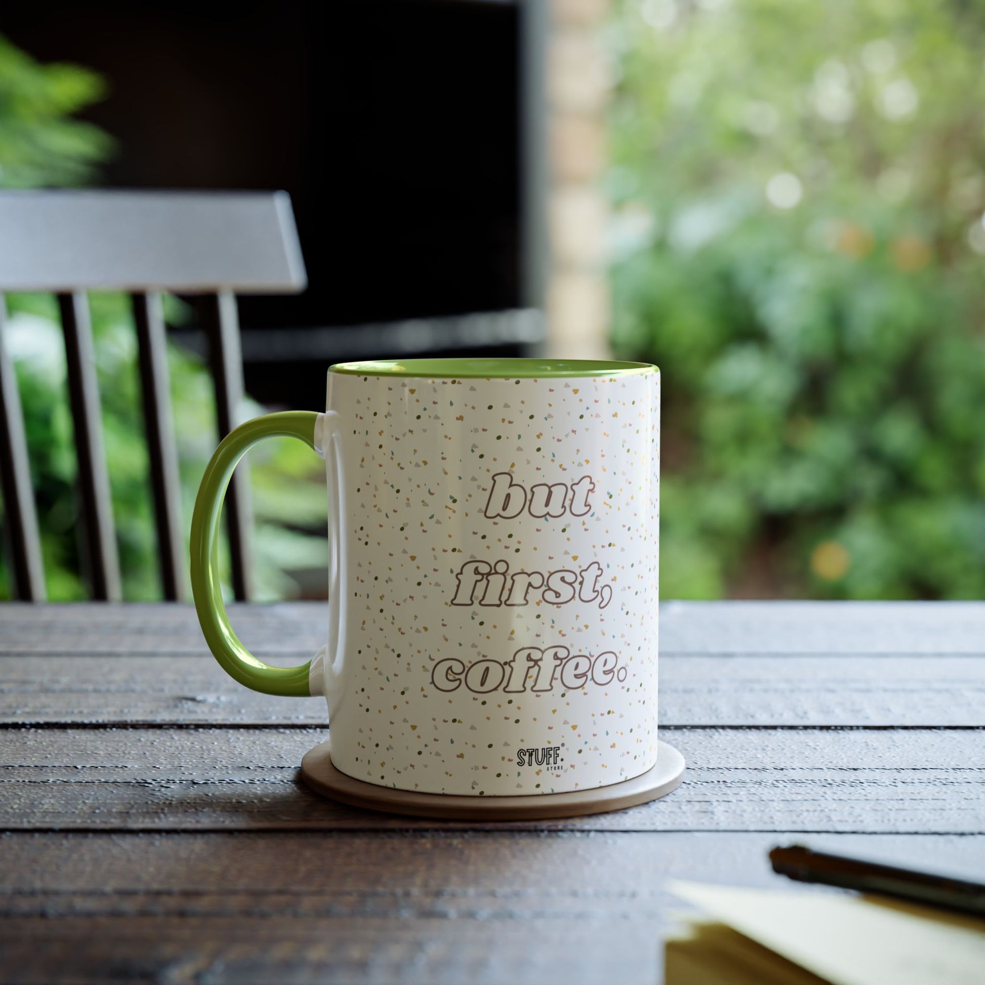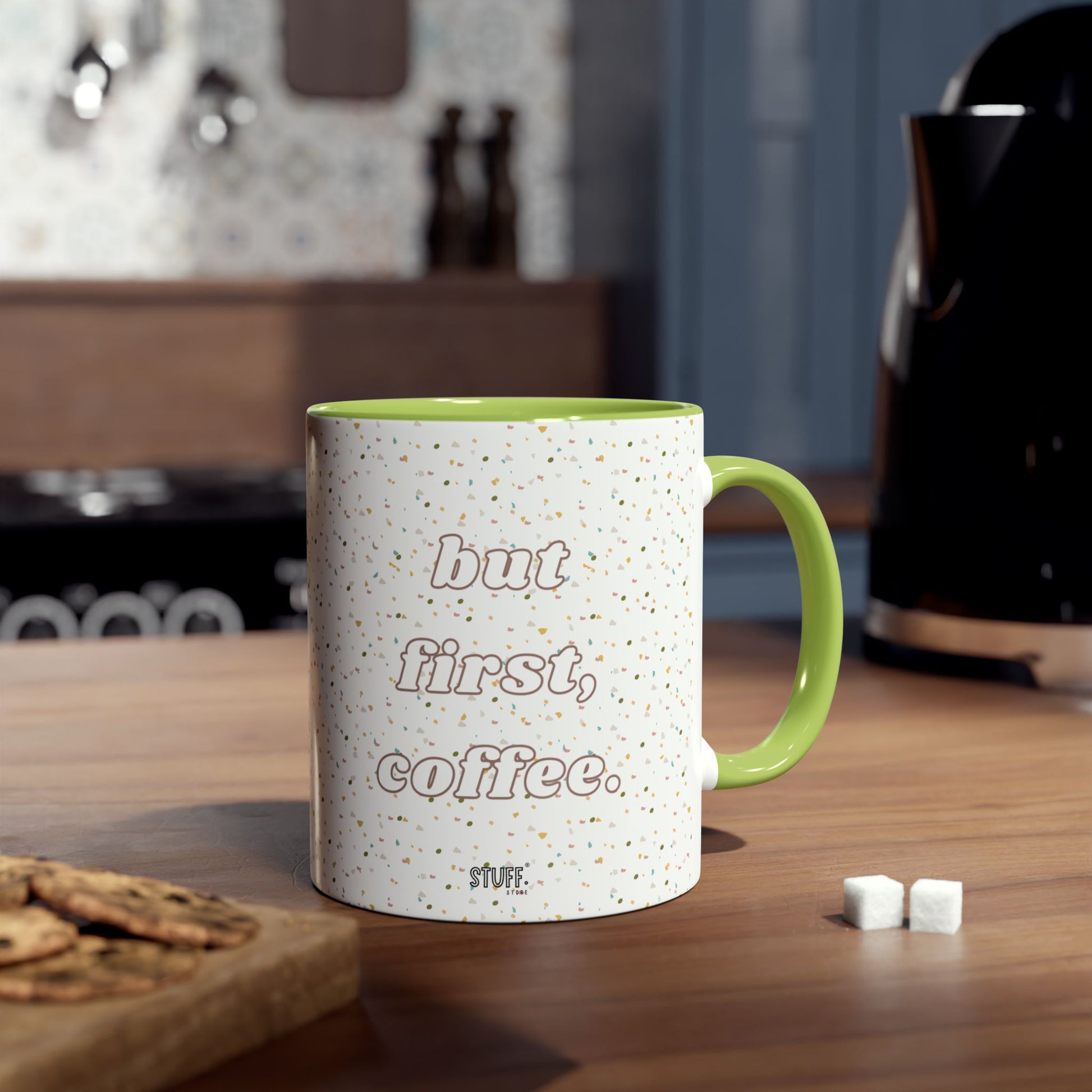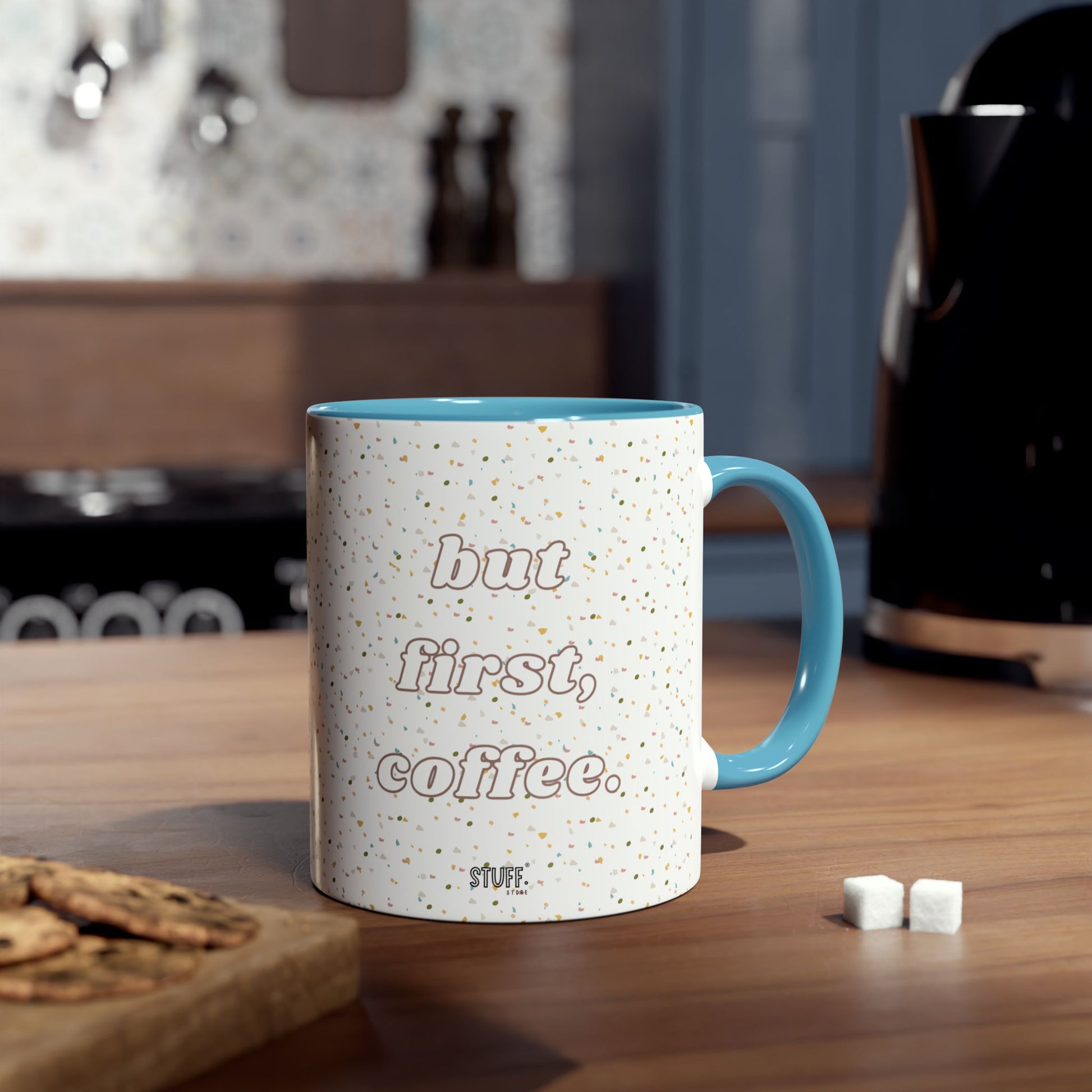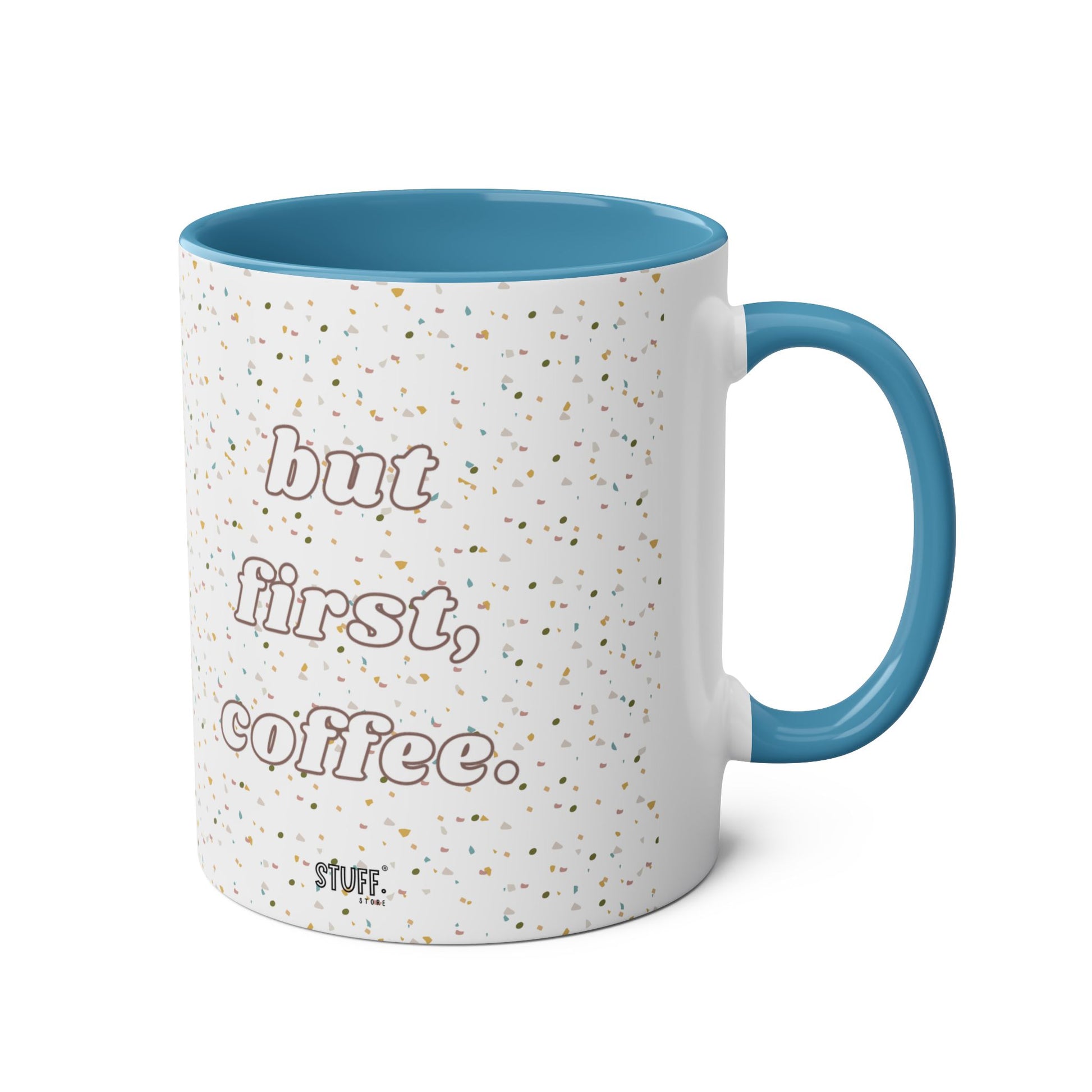 But First, Coffee Cup | Mug bicolore en céramique 330ml avec imprimé terrazzo